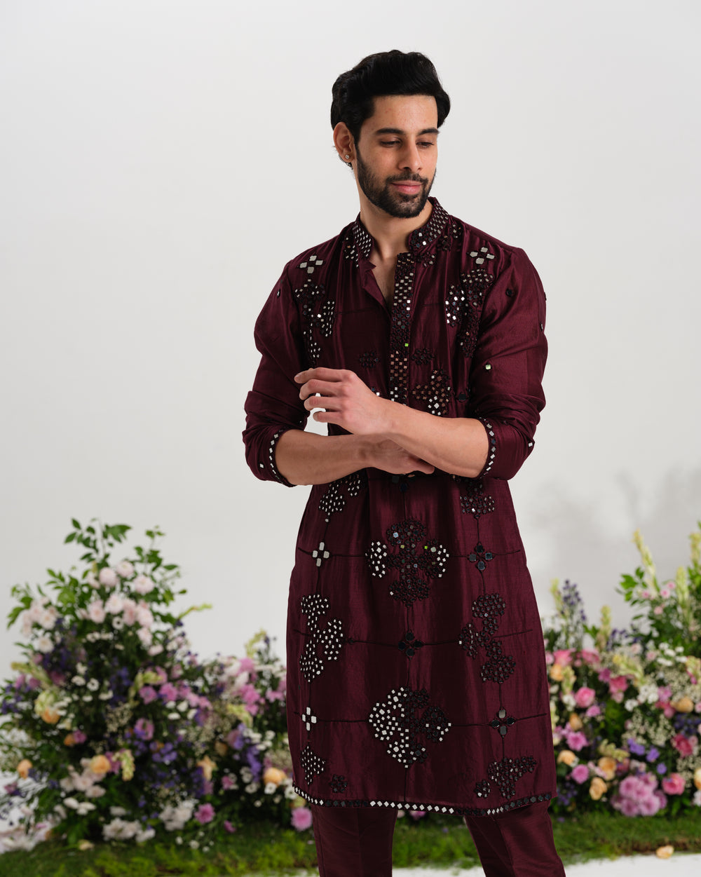 ⁠Burgundy kurta mirror work
